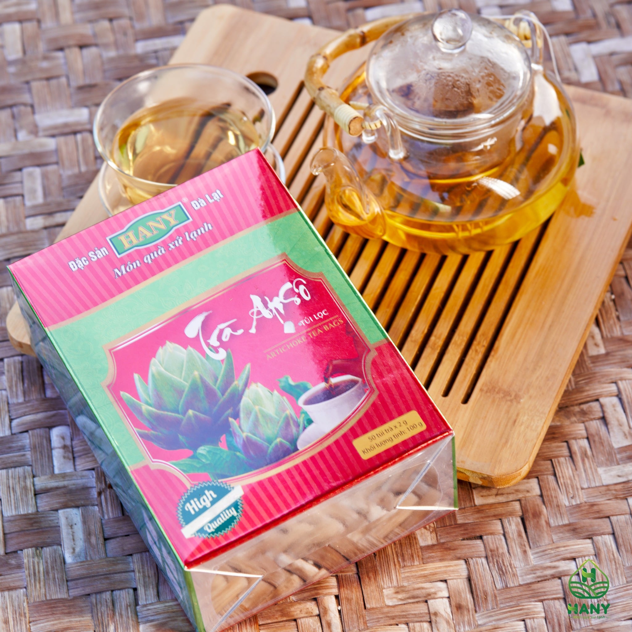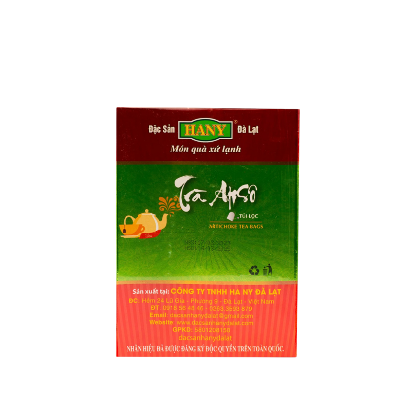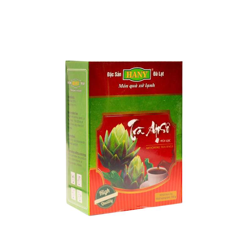 Trà Atiso túi lọc HANY - Hộp 50 túi lọcSản xuất trực tiếp từ nhà máy HANY, trà Atiso túi lọc HANY không chỉ đảm bảo quy trình chất lượng từ khâu chọn lọc nguyên liệu, rang xay và đóng gói thành phẩm mà còn mang đến sự hài lòng trong hương vị với công thức làm trà riêng biệt. Đặc biệt, trà Atiso HANY hoàn toàn không đường, thay vào đó, trà mang vị ngọt đặc trưng vốn có của cây atiso, kết hợp với hậu ngọt dễ chịu từ cỏ ngọt - loại thảo dược tốt cho sức khoẻ đã được y học công nhận. Trà Atiso túi lọc HANY vừa là thức uống mang lại nhiều lợi ích, vừa là món quà đặc sản Đà Lạt ý nghĩa dành cho người thân và bạn bè.