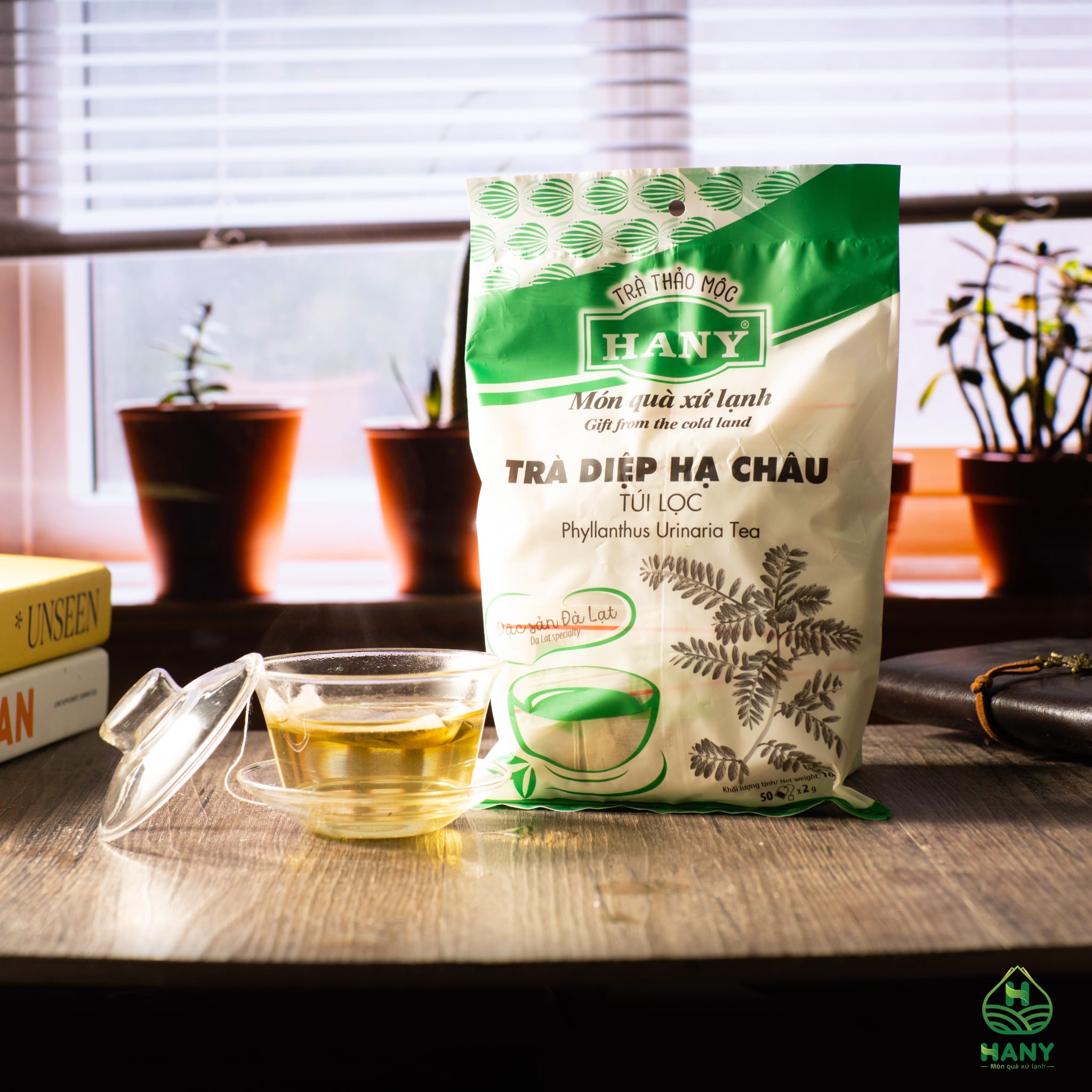 Trà diệp hạ châu HANY được sản xuất từ cây diệp hạ châu (dân gian gọi là cây chó đẻ răng cưa), là loại cây có tính mát, vị đắng và mang giá trị dược tính cao. Uống trà diệp hạ châu HANY mỗi ngày rất tốt cho sức khỏe: hỗ trợ trong việc ngăn ngừa và điều trị các bệnh về gan, thông mật, giải độc, thanh nhiệt, chống dị ứng, giảm mụn nhọt…Nhằm tạo độ hài hòa trong hương vị, giảm bớt vị đắng của diệp hạ châu, HANY tinh ý thêm 5% cỏ ngọt (vị thuốc tốt cho sức khỏe) để trà diệp hạ châu có sự ngọt dịu tự nhiên, dễ dùng.
